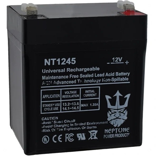 باتری 12 ولت 4.5 آمپر نپتون یک باتری سیلد اسید باکیفیت و بدون نیاز به نگهداری است که برای استفاده در سیستم‌های اعلام حریق، دزدگیر اماکن و تجهیزات حفاظتی طراحی شده است. این باتری با ولتاژ 12 ولت و ظرفیت 4.5 آمپر ساعت، تأمین انرژی پایدار و مطمئن را در زمان قطع برق تضمین می‌کند؛ بنابراین گزینه‌ای ایده‌آل برای سیستم‌های حساس امنیتی محسوب می‌شود. علاوه بر این، این باتری به دلیل ساختار پلمپ شده، نگهداری و سرویس دوره‌ای لازم ندارد.